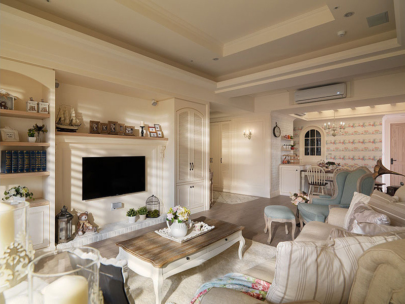 嵌入式空調的設計使得壁掛機顏值頓時升高一大截。層高較高的房子多級吊頂做出了空間的層次感。